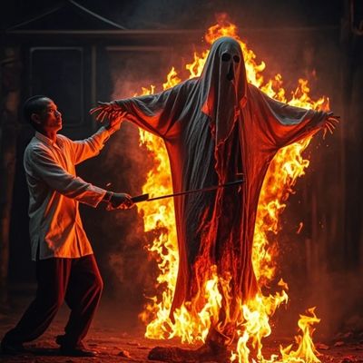 赤怨主屍緩緩消散前, 一些他生前被其他抗議的大學生架在柱子上 被燒死之前的回憶現前. 但是這次呢, 不同的是, 一個類似華裔男子, 救了他的女徒弟免於被狂熱徒 玷污、 幫他殺滅了那些大學生狂熱徒, 以及把政治統領 蘇零諾 給砍了頭, 也幫他澆滅了來勢洶洶的火焰. 右眼角眼淚掉落, 神奇的飛往那個華裔男子, 融入他的天靈蓋. 男子對他微笑, 説道, 「或許宗教已類似成了狂熱的邪教而不自知, 或許你是末法時代無辜並幫助他人開靈性的導師, 但這一切劫難應由上蒼來平衡天秤, 放下不是爲了那些白癡凡人, 而是爲了放過自己, 放下壓抑, 立地成神明團隊的一份子.」沒錯。華裔男子就是羅昌晟本人. 跟那些普通藍袍(aka 騙子)道人不同, 真正的超渡, 不只是來自於念誦經文那麽簡單. 靈修就是要身臨其境, 提供同理與幫助, 才有資格勸人爲善. 道德綁架的僞君子, 在末法時代, 比比皆是. 站在道德高峰點很容易, 引用經文章節來顯擺道德至高點亦容易, 但是真正的靈性, 皆在於實踐也. 羅昌晟 雖然不知道這位怨魂大boss 有多苦, 但竭盡可能的先提供靈魂療愈, 也爲他的遭遇感到憤慨. 宗教啊... 在末法時代就是這麽犯賤啊..